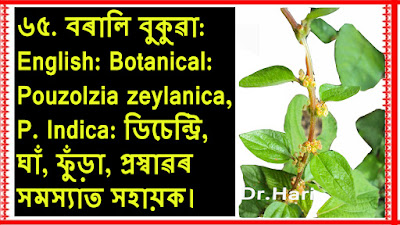 English: Botanical: Pouzolzia zeylanica, P. Indica: ডিচেন্ট্ৰি, ঘাঁ, ফুঁড়া, প্ৰস্বাৱৰ সমস্যাত সহায়ক।