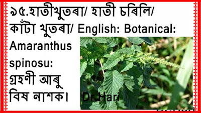 Botanical: Amaranthus spinosu: গ্ৰহণী আৰু বিষ নাশক।